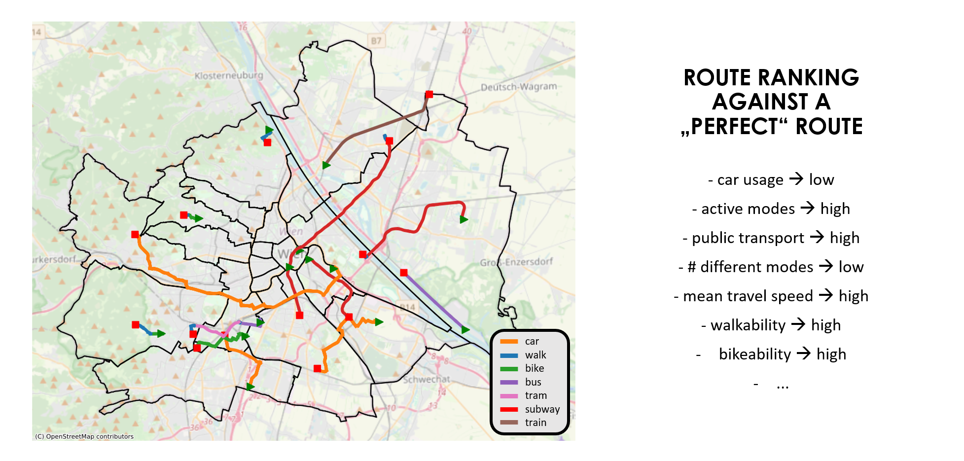 The Route Ranking Tool evaluates and ranks sets of routes based on customizable parameters. By highlighting the best and worst routes, it enables the analyses of patterns, surrounding areas, and other factors that can inform further studies or decision-making. The tool is fully flexible, allowing different parameters to be applied depending on the research focus or planning goals.